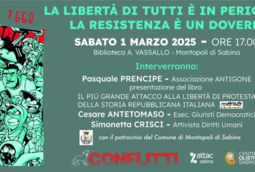 di Vittorio Lovera Sabato 1 marzo, presso la biblioteca civica Angelo Vassallo di Montopoli in Sabina, organizzata dall’Associazione di promozione sociale Conflitti e da Attac…